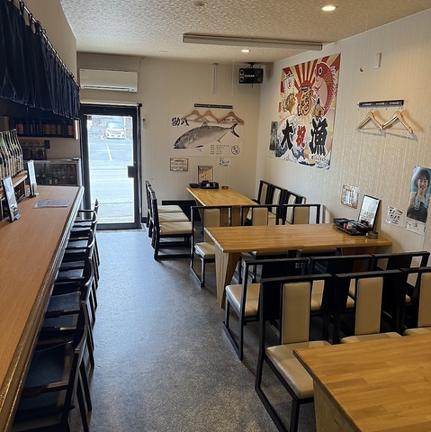 店内は広々とした空間でゆったりとおくつろぎいただけます。少人数から団体様でのご案内も可能です。ご宴会、ご接待、ご家族でのお食事などに最適です。ご要望に応じて調整致しますのでお気軽にお声掛けください。ご予約はいつでも・どこでもできるネット予約が便利です◎
