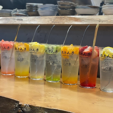 れとんきといえばフルーツサワー。7種類あり、果実がゴロゴロ乗ったサワーは味も見栄えも楽しめます!