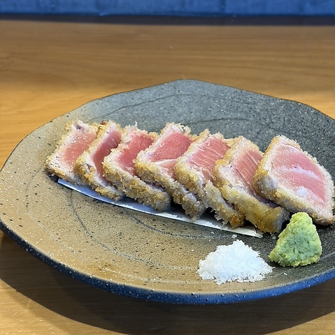本マグロを贅沢に使ったレアカツ。本マグロ本来の味を楽しんでいただくため、シンプルに塩とワサビを添えてご提供致します。”れとんきといえば”になりつつあるこの商品。是非頼んでいただきたいです!