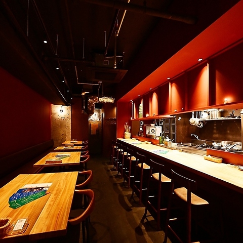 ライブ感満載のカウンター席♪目の前で焼き上げる絶品料理をお楽しみください!【栄/住吉/矢場町/肉/居酒屋/タコス/鉄板焼き/お好み焼き/飲み放題/貸切/忘年会/新年会/歓迎会/送別会/女子会/記念日/誕生日】