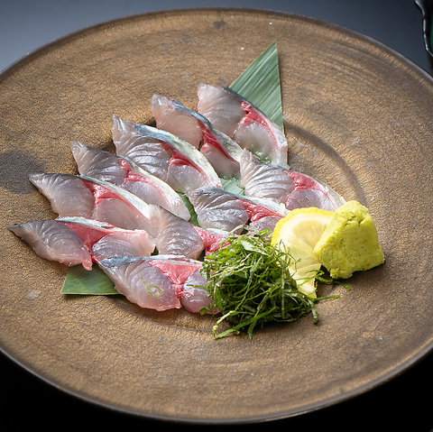 福岡・糸島半島野北漁港から直送の新鮮な活サバ。脂のり抜群で、鮮度が良いからこそ味わえるプリプリ食感の刺身です。