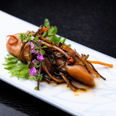 イカの活き造りをはじめ、游漁庵では玄界灘を中心とした海鮮を毎日仕入れています。その日いちばんの活魚を職人が丁寧に仕立て、博多名物のもつ鍋とともにゆったりと味わえるのも魅力。さらに各種コースには飲み放題時間無制限もご用意。