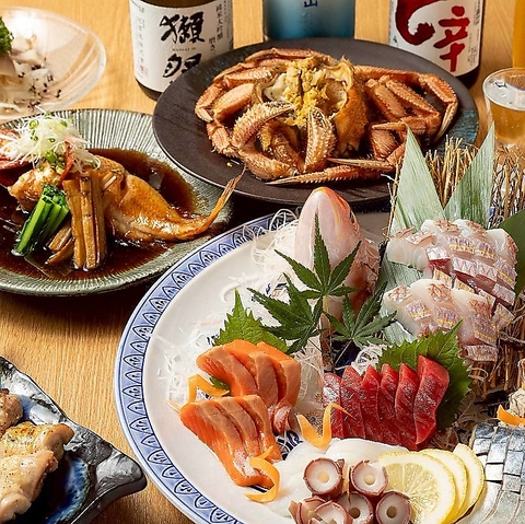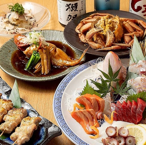 道産の毛蟹やズワイガニを90分食べ放題で満喫できるコースをご用意!嬉しい2時間飲み放題付きです。他にも刺身盛り合わせなど、季節の食材を使用したお料理をご堪能いただけます。各種ご宴会にぜひご利用ください。