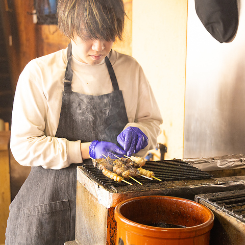 串の打ち方、焼き方を工夫することで、香りのつき方、水分残り方が絶妙となり、他店舗とは違う芳ばしさ、クセになる食感をお楽しみいただけます♪高温の炭で焼き上げるため、肉汁がお肉の中にぎっしりとつまり、外はカリカリ食感となります!