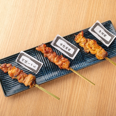 福島県が誇る三大ブランド鶏もも肉を一本串で食べ比べ。それぞれの異なる食感をお楽しみいただけます☆そのほか、福島県産鶏肉の十部位を一本串でまるごとお召し上りいただける「鶏一羽串」や、仙台牛の十部位をひと串で味わえる「牛一頭串」もご用意しております♪