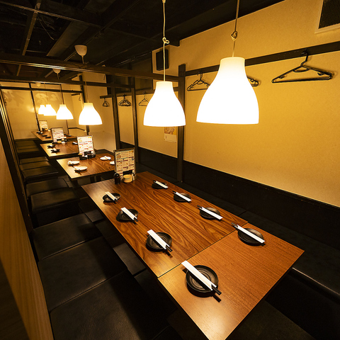 少人数から団体様までご利用いただける個室席を2名席~ご用意しております。団体様でのご利用は最大70名様までご利用いただけます!会社宴会・打ち上げ・懇親会など、大型宴会のご予約もお気軽にお問い合わせください。落ち着きのある店内でごゆっくりお過ごしいただけます♪