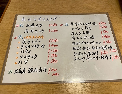 厳選した食肉卸さんからこだわりをもって、お肉を仕入れております。その日によって定番メニューとは違う部位もあります。是非、本日のオススメもご注目ください!いつも頑張っているお客様に明日への活力をお届けいたします。当店で過ごしたお時間がお客様にとって素敵なお時間になりますように。
