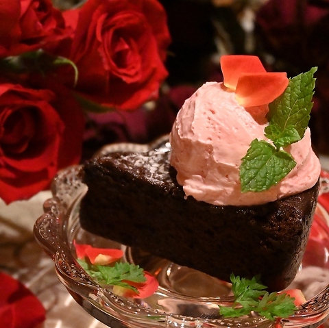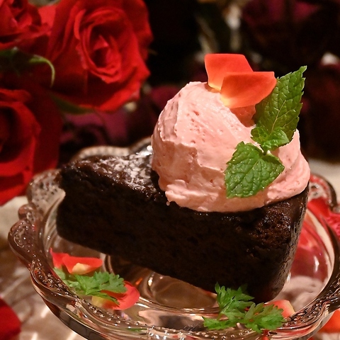 イチオシ!当店オリジナルの薔薇のホイップクリームを乗せたガトーショコラ