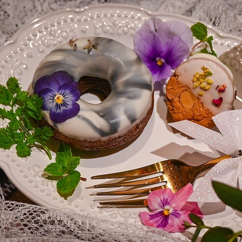 当店は、食用のお花が入った料理やドリンクをご提供しています。お花の華やかさと美味しさが融合した特別な一品で、目でも楽しんでいただけます。非日常感、特別感を味わえる華やかな装飾・盛り付けにご期待ください★