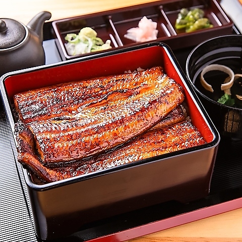 高品質なうなぎを丸々一尾使用した松のうな重◎関東風の蒸し調理を用い、焼き目もしっかりつけることで外はサクッ、中はふわっとした食感をお楽しみいただけます♪継ぎ足しの甘めのタレと固めのご飯のバランスが好評です!