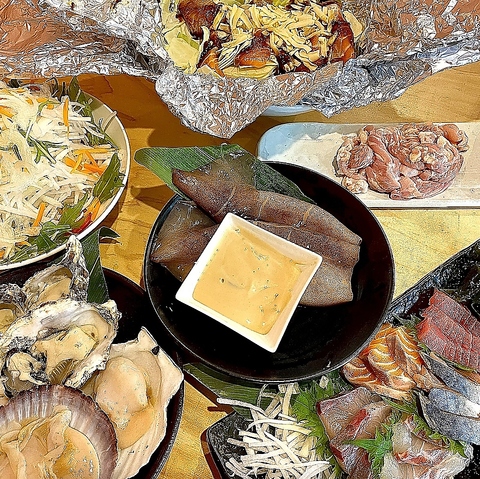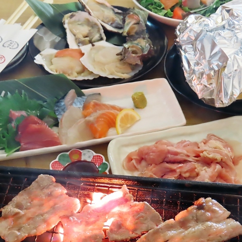 お家ではできない浜焼をぜひ当店で!エビ・サザエ・ハマグリ・牡蠣などの食材をバラエティー豊かに取り揃えております。お席で焼き上げる美味しい浜焼でお酒も進む◎季節の旬の食材やお肉・お野菜の他、姉妹店のお好み焼きもご用意してお待ちしております♪