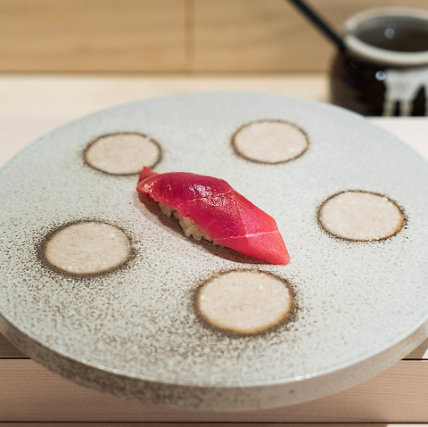拘りの赤酢鮨と共に、季節ごとの旬の日本酒を楽しめます。日本酒の香りとお寿司のハーモニーを心ゆくまで。