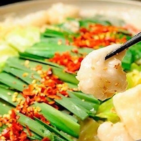 白みその甘みとコクが引き立つもつ鍋は寒い季節にぴったりの一品。飲み放題付コースで宴会にオススメです☆