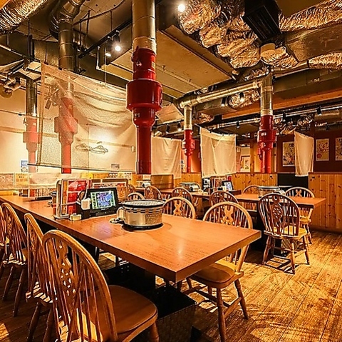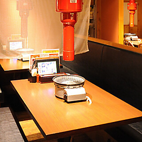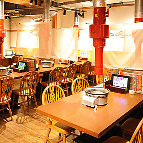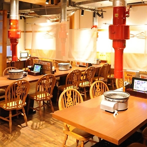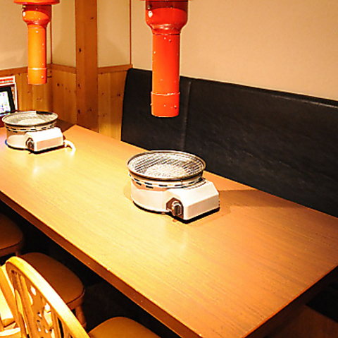 広々としたテーブル席は、友人や家族との楽しいひとときを演出します。落ち着いた雰囲気で、心ゆくまで焼肉を楽しむことができる空間です。無煙ロースター完備で、焼きたての美味しさを煙を気にせず味わえます◎