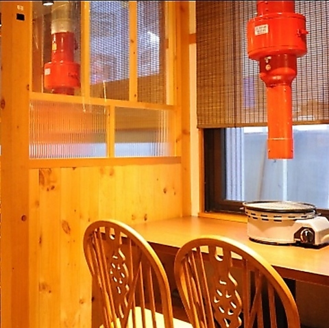 【少人数で楽しめるカウンター席】1~2名様向けの席もご用意!ふらっと気軽にお店に行けます♪カウンター席は、おひとり様に嬉しい仕切り付き!無煙ロースターを使用しているため、煙を気にせず思う存分焼肉をご堪能いただけます!