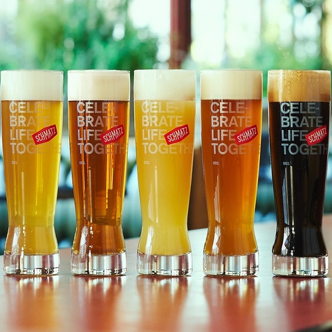 シュマッツの人気メニューを堪能できる飲み放題付きコースを全5種類ご用意しております!それぞれのコースでは、ドイツビール3種類を含む2時間飲み放題付き♪+500円で全種類のビールがお楽しみいただけるプランに変更も可能です。