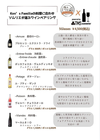- Ken’s Familiaの料理に合わせソムリエが選ぶワインペアリング