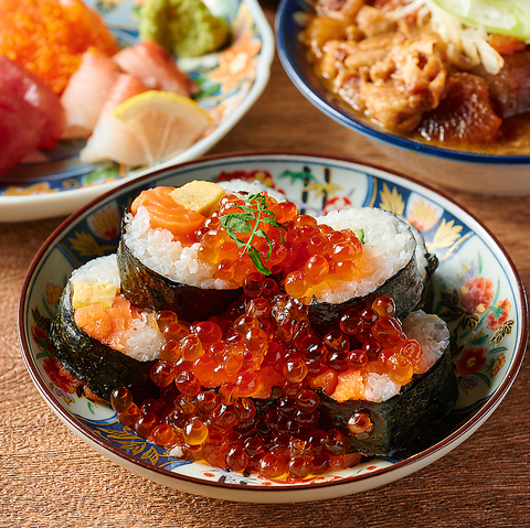 名物『うにといくらの一口太巻き』をはじめ、鮮度抜群の海鮮を使った創作和食が勢揃い!『本まぐろの鉄火太巻き』『鰻太巻き』『西京味噌の牛すじ煮込み』など、こだわりの逸品をぜひご堪能ください。