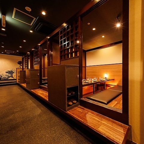 日本酒好きな店長が料理に合ったお酒をご提案致します。珍しい銘柄やこだわり地酒、女性に嬉しい果実酒も豊富にご用意しております。飲み放題付コースで逸品料理と上質なお酒で疲れを癒す至高のひとときをお過ごしください。会社の宴会・オフ会や女子会、その他様々なシーンでご利用頂けます。開放的な広々空間で楽しい時間を♪