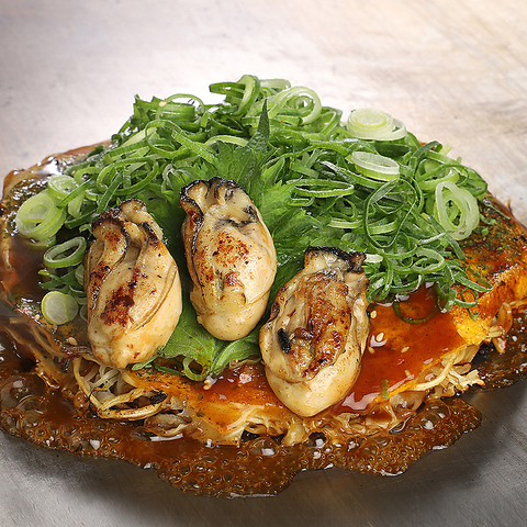 広島産の新鮮な牡蠣を贅沢に使用したお好み焼きは絶品の美味しさ!牡蠣の濃厚な旨味が口の中に広がり、大葉の爽やかな香りと新鮮なネギのさっぱりした味わいがアクセントになってペロリと食べられる一品です。広島名物のお好み焼きを、広島が誇る食材でいただく、まさに広島を堪能できる自慢のメニューとなっております。