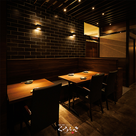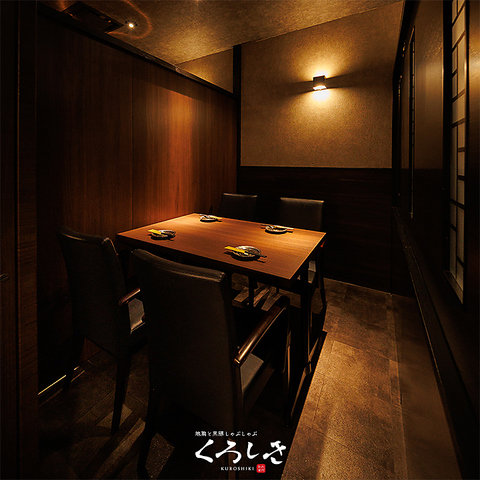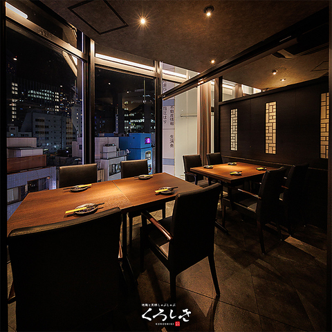 [6~8名様]外を眺めながらゆったり寛げる扉付き個室。シックな色合いのインテリアと落ち着いた照明が、自然と心を和ませてくれます。会社の宴会や仲間との集まり、記念日の食事まで柔軟に対応可能です。