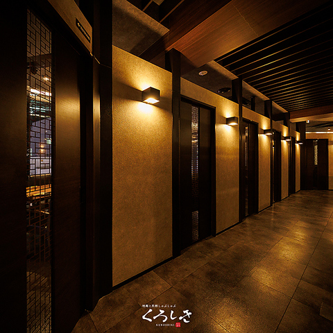 [70名様]和モダンの設えが印象的な廊下の先に、扉付きの個室空間が連なります。店貸切では、この特別な空間全体を贅沢に使用可能。会社宴会、歓送迎会、同窓会など、宴の時間をより特別に彩ります。