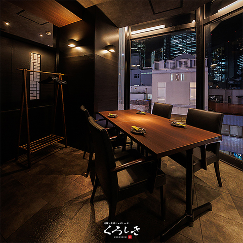 大きな窓から広がるビル街の景色を眺めながら、ゆったりと食事を愉しめる個室空間。都会の喧騒を忘れさせてくれる落ち着いた雰囲気で、友人との飲み会やデート、少人数での会食、会社の宴会に最適です。