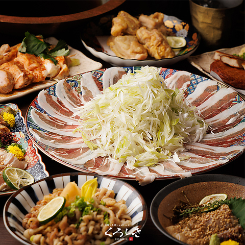 宴会に最適な飲み放題付コースを5000円からご用意。香ばしく焼き上げた知覧どり、サクッと揚げた大分とり天、旨み溢れる黒豚しゃぶしゃぶに加え、馬刺しや土鍋飯など、九州和食が宴席を彩ります。