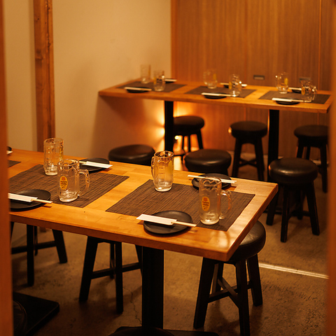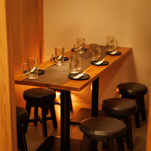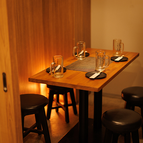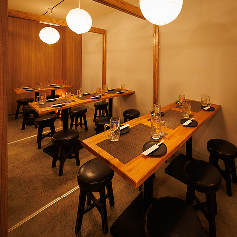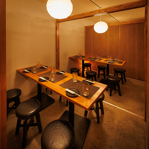 2名様~個室でご案内可能!プライベート感もしっかり確保されていて、各種宴会にピッタリ!座り心地の良い丸椅子に、さりげなくセンスが光るテーブルセット!落ち着いた雰囲気の中でくつろげます!