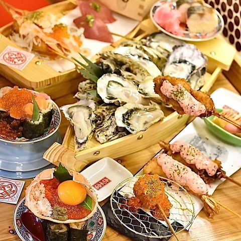 名物の生牡蠣はもちろん、お寿司や串揚げ、一品料理などその日の気分に合わせてお楽しみいただけます♪