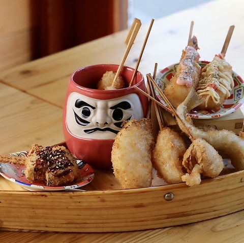 定番の牛ロース串揚げから、モッツァレラチーズ串揚げや、サーモンいくら、牡蠣串揚げ、大海老串揚げなどバリュエーション豊富♪こだわりの油でサクッと仕上げてるので何本でも食べれちゃいます♪