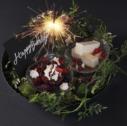 特別感たっぷりのサプライズプラン!誕生日や記念日、大切な方へのお祝いにぴったりの、思い出に残る演出です。お料理だけではなく、写真映えも間違いなし!心に残る特別なひとときをお届けいたします♪