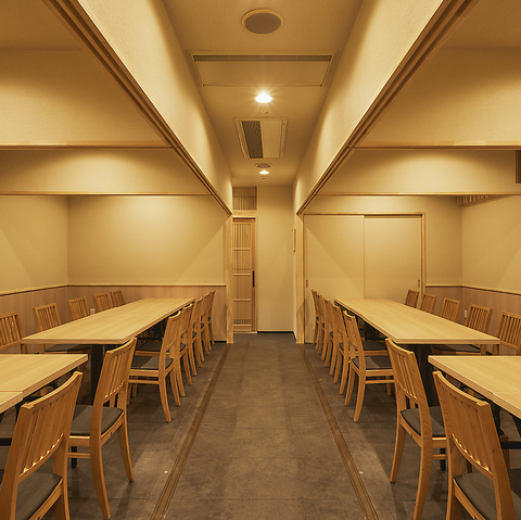 【宴会場 錦江湾の間】 最大36名まで利用可能な宴会場。6つの個室に仕切ることも可能で、用途に合わせたセッティングに対応できます。広々とした店内で、ゆっくりとお寛ぎください。