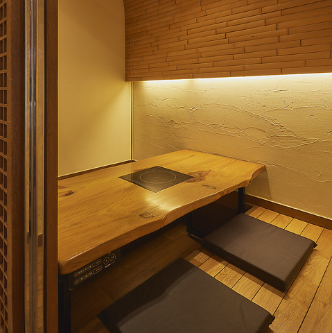 【掘りごたつの完全個室】 4名様までご利用いただける掘りごたつ席は、ゆったりとした時間をお過ごしいただけます。