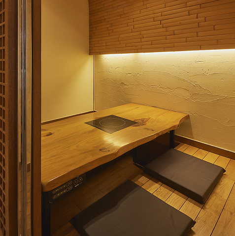 | 掘りごたつ個室 | 4名様×7 | 【完全個室】掘りごたつ席は4名様×7卓ございます。靴を脱いで足を伸ばして寛ぎたい方にはピッタリ◎ごゆっくりとお寛ぎください。 |