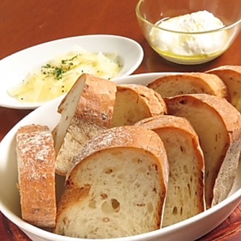 お通しはライ麦ブレッド&塩生クリーム食べ放題orおつまみチーズが食べ放題です♪初めてのお客様は是非ライ麦ブレッドを!単品でもご注文可能です♪
