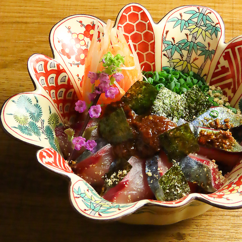 鹿児島産の新鮮なくびおれ鯖×本場福岡のごまだれを使用した、両県のいい所どりをした一品です♪肉厚でぷりぷり、甘味のある鯖と風味豊かな濃厚ごまだれの相性は抜群です!適度な味の濃さでお酒も進みます◎福岡で15年間料理の腕を磨いた店主が心を込めてつくる、博多名物のごま鯖を鹿児島で食べることができます。