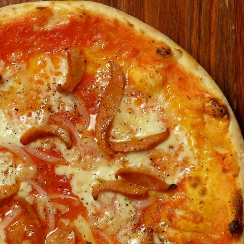 原材料の粉から手作りで仕込み、窯焼きで提供されるCONA特製ピザ。外はカリッと、中はもっちりとした焼き上がりは窯焼きでしか出せない仕上がりです。定番の「マルゲリータ」からデザートピザの「チョコバナナ」まで30種類以上のピザを550円(税込)で提供いたします。