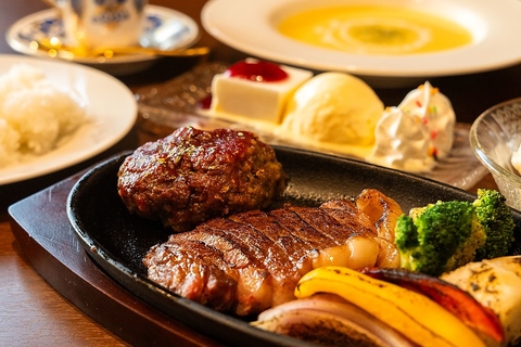 【ボリュームたっぷり】≪肉×肉の絶品料理≫加古川志方『大福』の鉄板和牛サーロイン&ハンバーグ♪