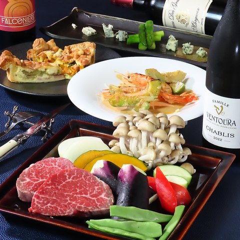 新鮮な旬の食材を使った、フレンチ・鉄板料理のコースを中心にご提供しております。アラカルトは21時から承ります。