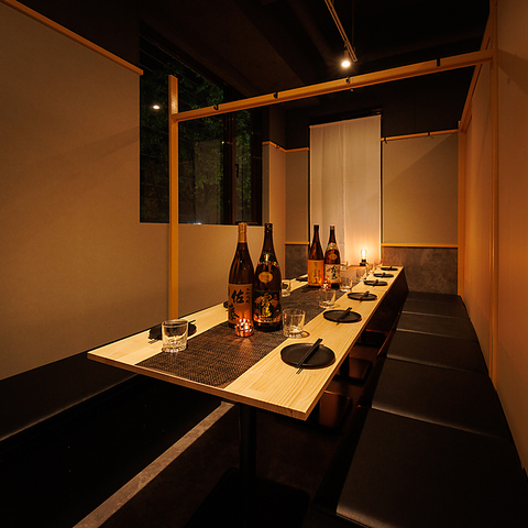 店内をすべて貸切って独占したような気分に!スタイリッシュな木目の引き戸を開けると広がる静かな空間は、接待や会社宴会、仲間との大切な飲み会にもピッタリ♪通路もゆったり、照明も優しく、プライベート感たっぷりの空間で、気兼ねなく楽しめる時間を演出します!お店をまるごと貸切って、特別な宴会を特別な空間で!