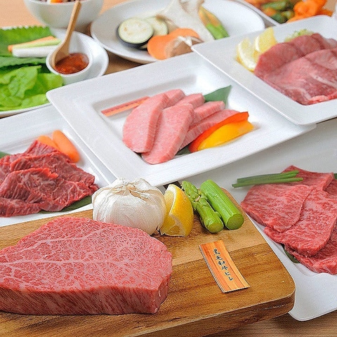 記念日やお誕生日、取引先の接待などに最適な、豪華食材で彩る飲み放題付コースをご用意。おすすめは、梨久選りすぐりの贅を尽くした逸品を味わえる『特選コース』。赤身の代表とも言われるヒレステーキや特選ランプ、特選ハラミなど極上のお肉が勢揃い。各部位の味の違いを楽しみながら、贅沢なひと時をお過ごしください。
