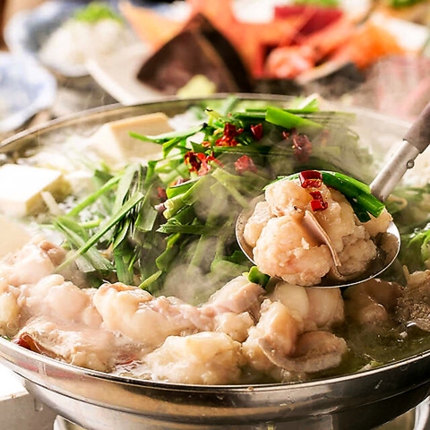 冬の寒さに負けない充実の贅沢鍋コース。もつ鍋を中心に、豚カツや春巻き、串焼きなど多彩な味わいを楽しめます。宴会はもちろん、接待やお祝いにも最適な充実の内容です!