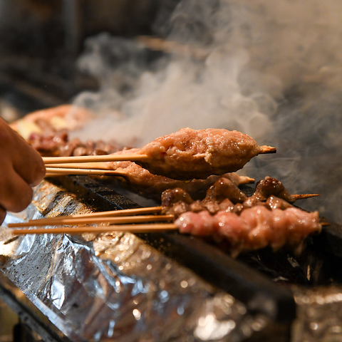 奥三河どりを使った焼き鳥。肉質がよく、コクのある旨味が特徴!それでいて、他の鶏より脂肪が少なくヘルシーさも◎炭火でじっくり火入れするので、遠赤外線効果でふっくらジューシーな焼き上がりに!希少部位もございます!