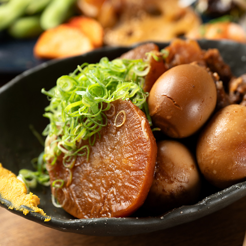 もつ、玉子、大根、牛すじなど、どて煮の精鋭が勢揃い!臨場感ある屋台で楽しむことも可能!