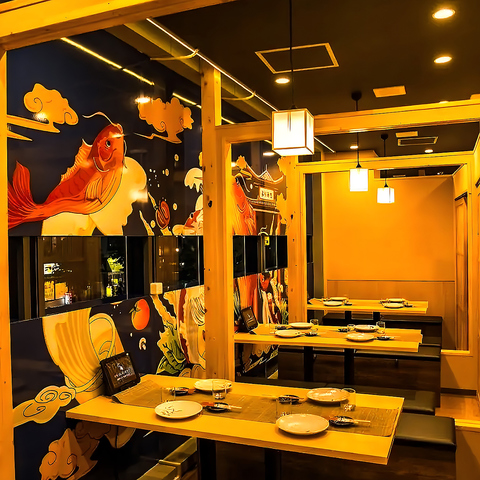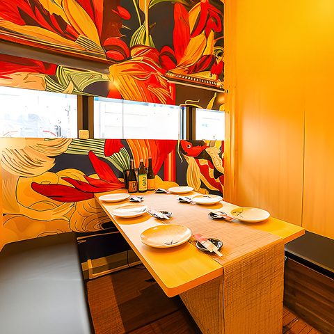 雰囲気自慢の個室席は周りを気にせずゆったりお寛ぎいただける人気の席となっております!!団体様にもご利用いただけるレイアウトとなっており、会社宴会や結婚式の二次会、歓送迎会など様々なシーンに対応しております!!