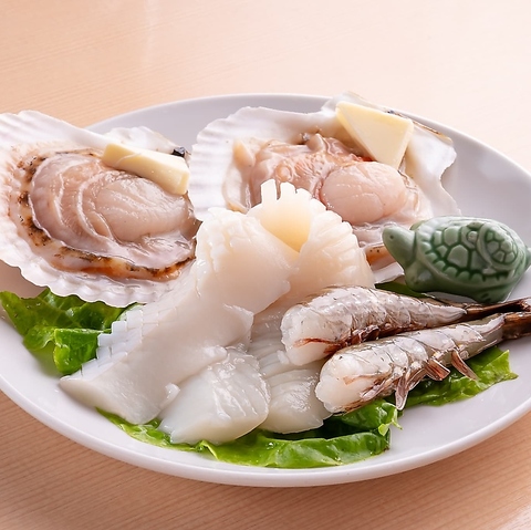 ホタテやエビ等の新鮮な「海鮮盛り合わせ」もご用意しております♪旨味たっぷりの素材をお楽しみください!