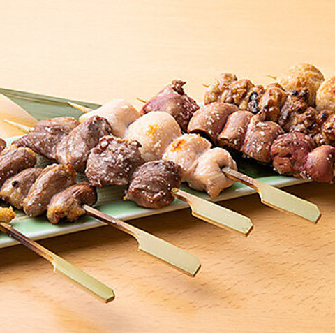 鮮度抜群な朝〆大山とりを使った焼き鳥串を丁寧に焼き上げた、柔らかくジューシーな自慢の逸品!色々な部位の味や食感の違いを、塩・タレでお楽しみいただけます★