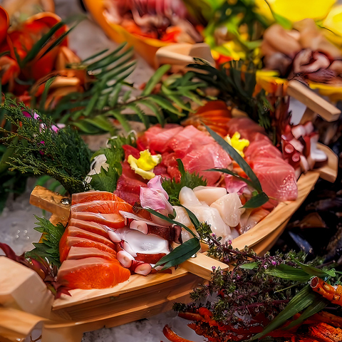 新宿「魚道」居酒屋では、魚や刺身、海鮮料理を堪能できるランチや女子会、宴会に最適な全室完全個室を提供。最大140名様の大規模貸切も可能です。2480円からの2時間飲み放題付コースで、特別な日をさらに楽しく。