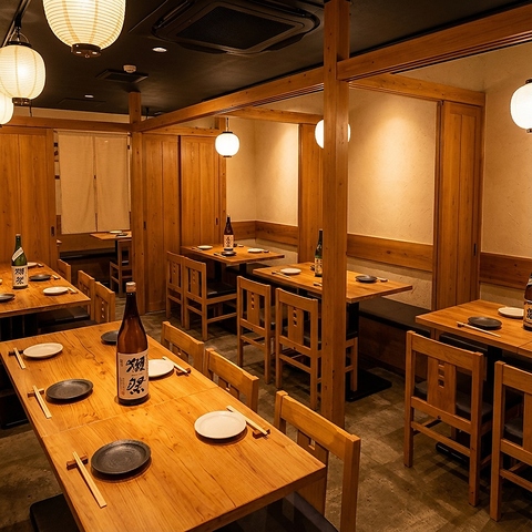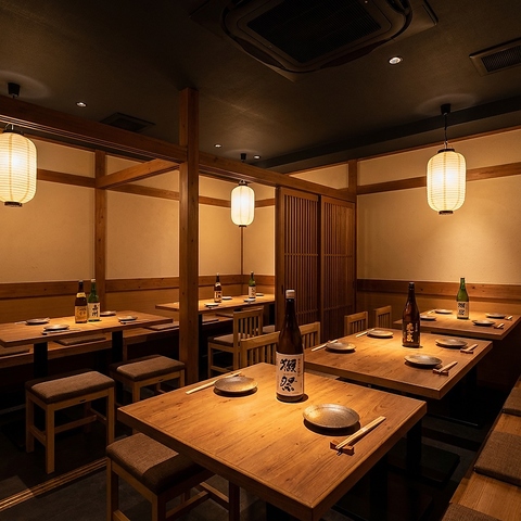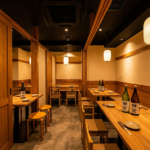 木の温もり溢れる完全個室6~8名◎女子会・昼宴会に最適!旬刺身×創作海鮮を堪能、貸切OKで周囲を気にせずゆったり。飲み放題付コース充実&24H営業で二次会も安心!掘りごたつorテーブル選択可で接待・会食にも人気。記念日プレート無料サービスも実施中♪